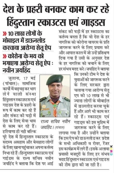 राज्य सचिव हिंदुस्तान स्काउट्स एंड गाइड हरियाणा