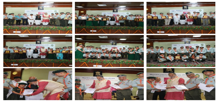 दोनों मुख्य अतिथि का मंच पर स्कार्फ़ पहनाकर स्वागत किया गया। तपश्चात सभी जिला अनुसार कब एंड बुलबुल , स्काउट्स एंड गाइड्स ओर जिले के अध्यपको को प्र्सति पत्र देकर सम्मानित किया गया। सभी जिला शिक्षा अधिकारियों ओर मौलिक शिक्षा अधिकारियों को संस्था का स्मृति चिन्ह देकर नवाजा गया ।ततपश्चात सभी जिला सचिव को संस्था स्मृति चिह्न देकर सम्मानित किया गया। सभी राज्य मुख्यालय के अधिकारियों को प्रस्सति पत्र देकर सम्मानित किया गया।
